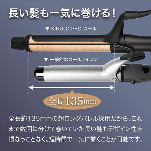長い髪も一気に巻ける、全長約135mmの超ロングバレル採用。バレルの長さを最大限に活かせる構造なので、これまで数回に分けて巻いていたロングヘアも、デザイン性を損なうことなく、短時間で一気に巻くことが可能です。
